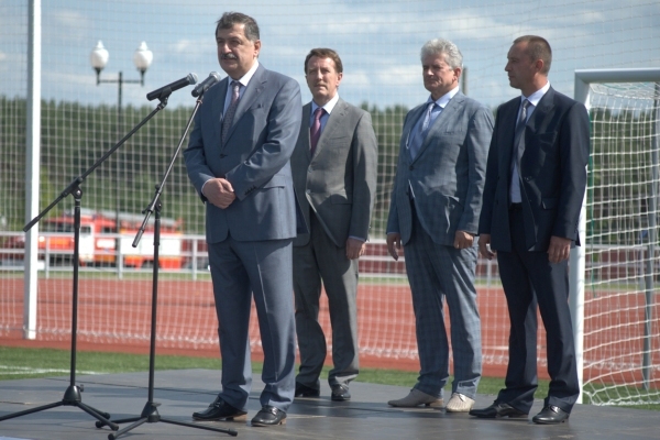 Поздравляя горожан с праздником, первый заместитель Генерального директора ОАО «Концерн Росэнергоатом» Джумбери Ткебучава отметил: «Совместные целенаправленные действия Концерна «Росэнергоатом» и правительства Воронежской области позволили в короткий срок реализовать такой масштабный проект. Все, кто присутствует сегодня на стадионе, видят, что строители вложили в него душу, и так же с душой будут относится к этому замечательному объекту. Пять-шесть лет назад Нововоронеж был совершенно не такой, как сегодня. Мы — атомщики — уверены в будущем Нововоронежа, по крайней мере на сто лет вперед. Потому что строятся новые блоки Нововоронежской АЭС. И этот комплекс, на мой взгляд, и по мнению Генерального директора «Росатома» Сергея Кириенко, далеко не последний из спортсооружений в атомных городах. Желаю вам побольше таких светлых и праздничных дней».